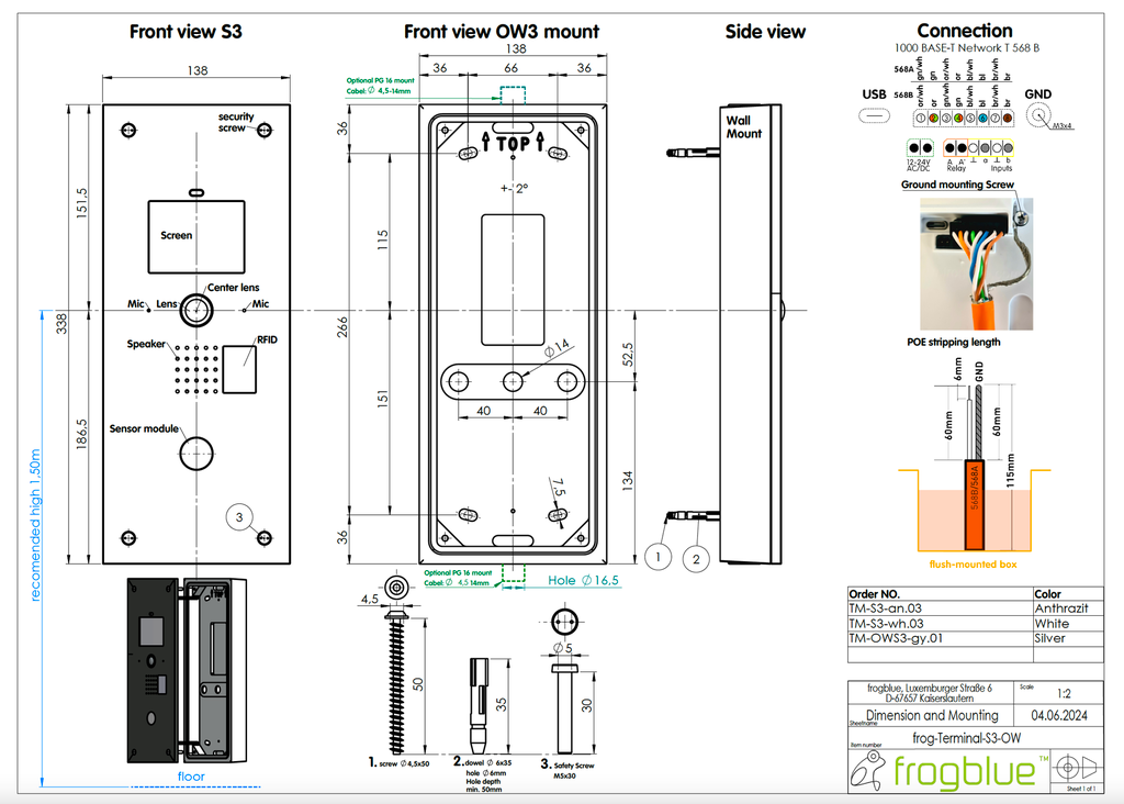 Opbouwbehuizing van aluminium, incl. montageset. Geschikt voor de modellen: frogTerminal S3 Vario en frogTerminal S3 Plus.